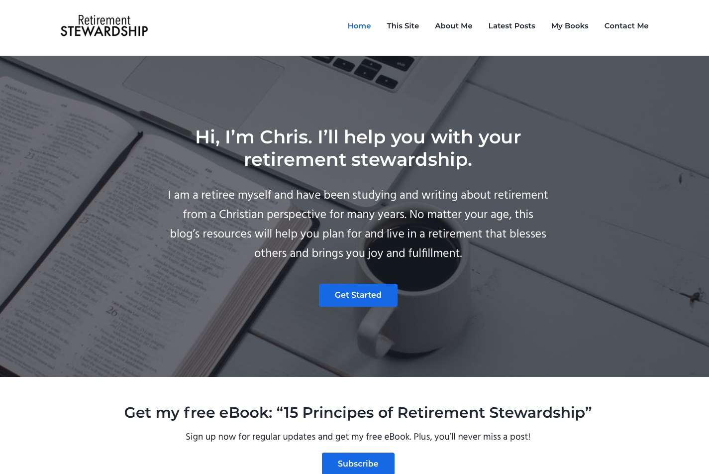 This is simply a prominently displayed link to give readers an opportunity to sign up to receive updates when I post an article on the blog, and also offers a free copy of my eBook, 15 Principles of Retirement Stewardship.
