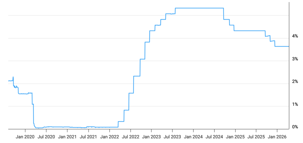 The interest rate landscape has shifted significantly since I first wrote this article in 2023. After raising rates aggressively from 2022 through mid-2024 to combat inflation, the Federal Reserve reversed course in late 2025, implementing three quarter-point rate cuts in September, October, and December. The Fed Funds rate, which peaked at 5.33% in 2023, now sits at 3.50-3.75% as of April 2026, following two consecutive meetings where the Fed held rates steady.